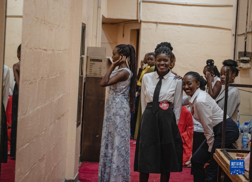 5月12日,在肯尼亞內羅畢大學,漢語橋參賽選手在后臺準備。