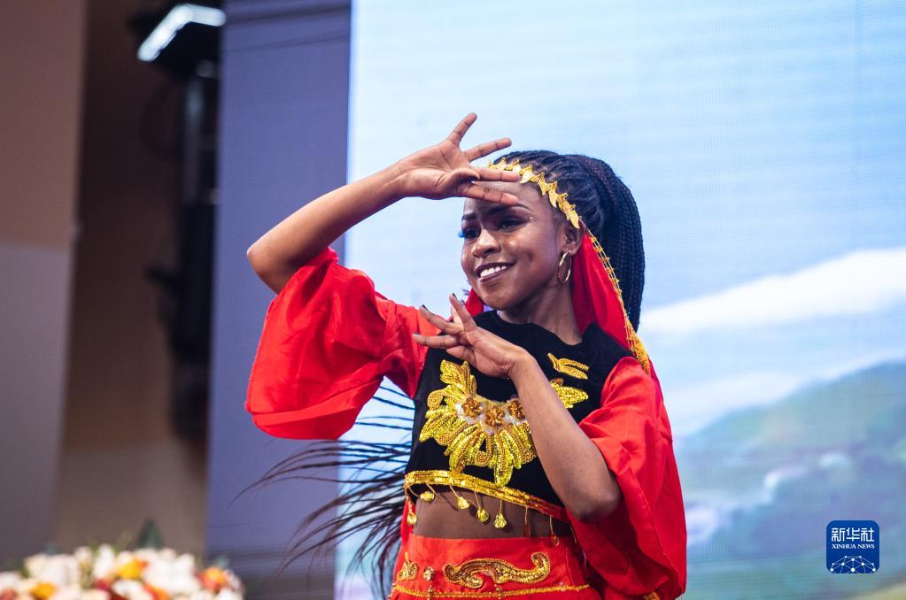 5月12日,在肯尼亞內羅畢大學,漢語橋參賽選手表演舞蹈。