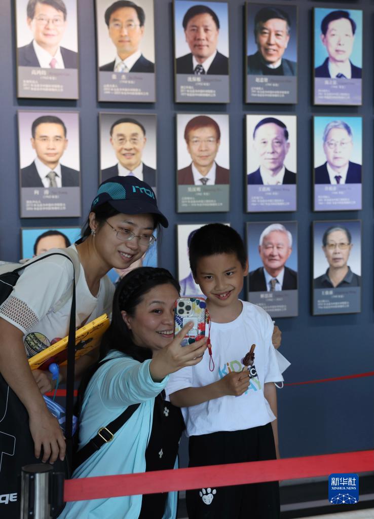 5月13日,參觀者在中科院物理研究所院士墻前留影。