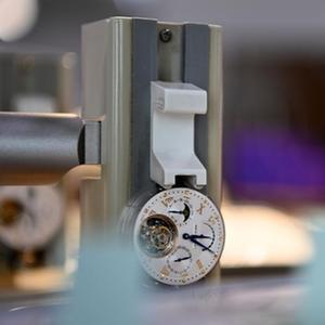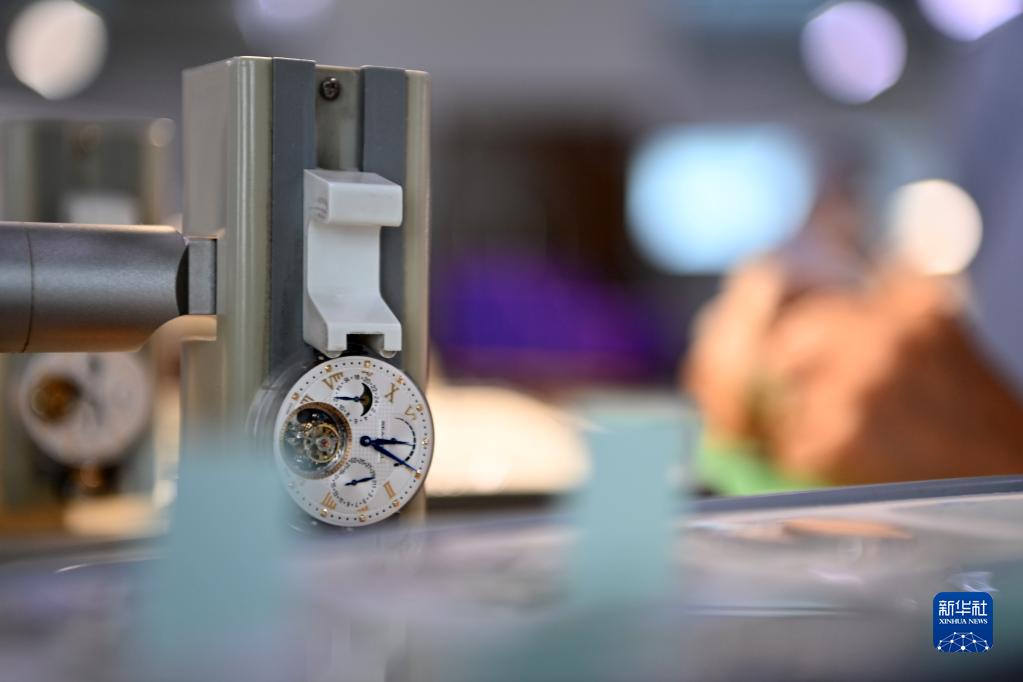 在天津海鷗表業集團生產車間,員工在調試一款陀飛輪手表(5月12日攝)。