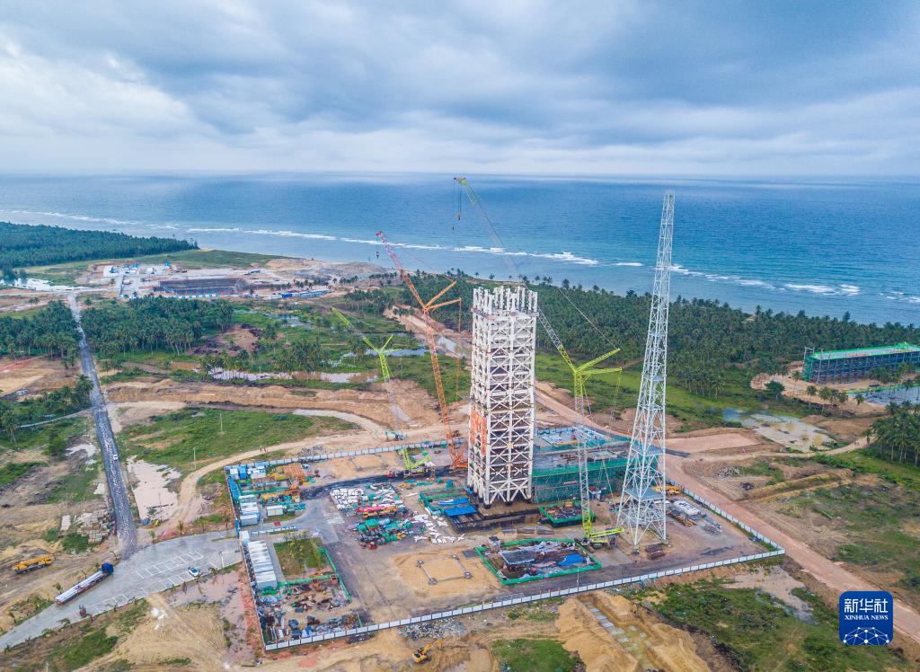 5月12日在海南省文昌市拍攝的建設中的海南商業航天發射場1號工位(無人機照片)。