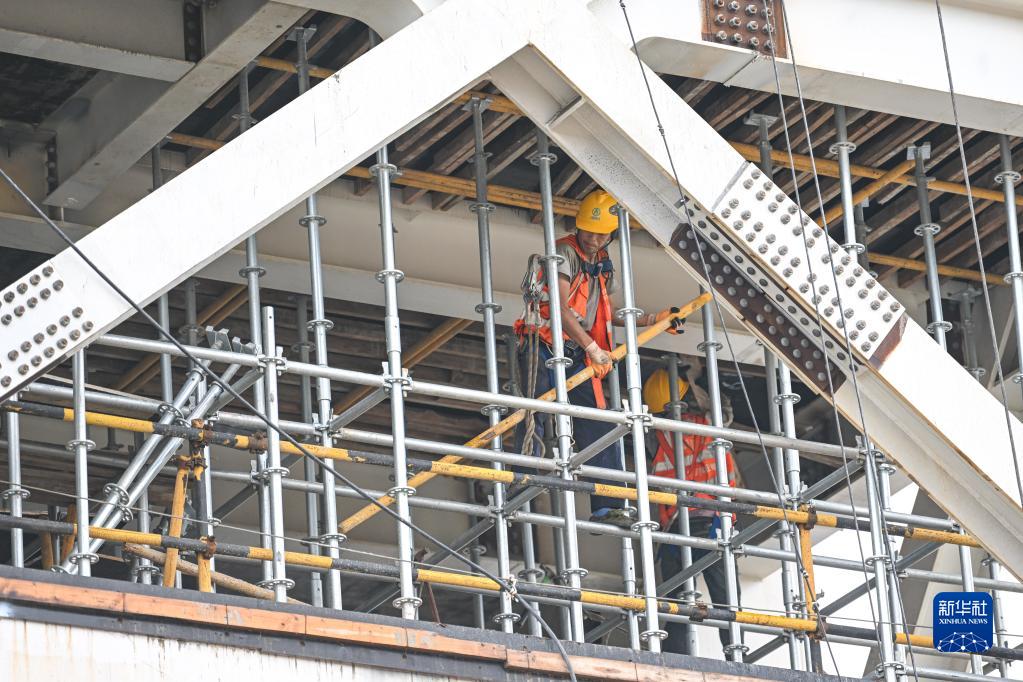 5月13日,工人在位于海南省文昌市的海南商業航天發射場1號工位施工。