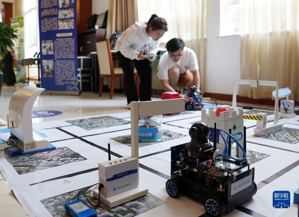 5月13日,上海電子信息職業技術學院的師生展示智能機器人創新開發項目。