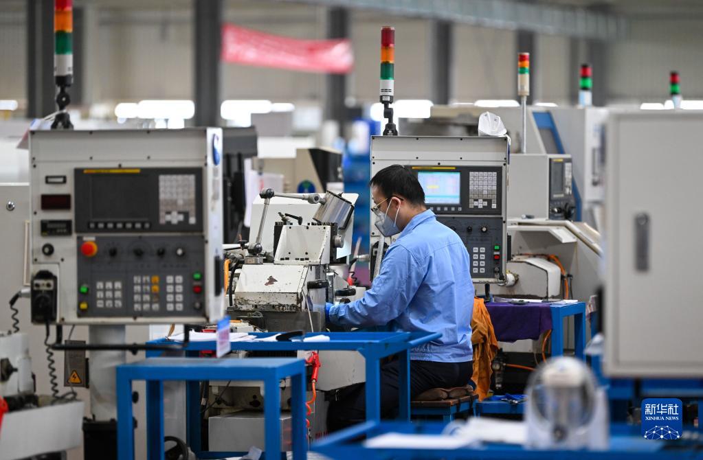 5月11日,在航天精工股份有限公司,工人操作設備加工航空航天類部件產品。