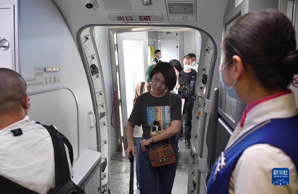 5月13日,旅客登上西安-烏魯木齊-阿什哈巴德首趟航班。