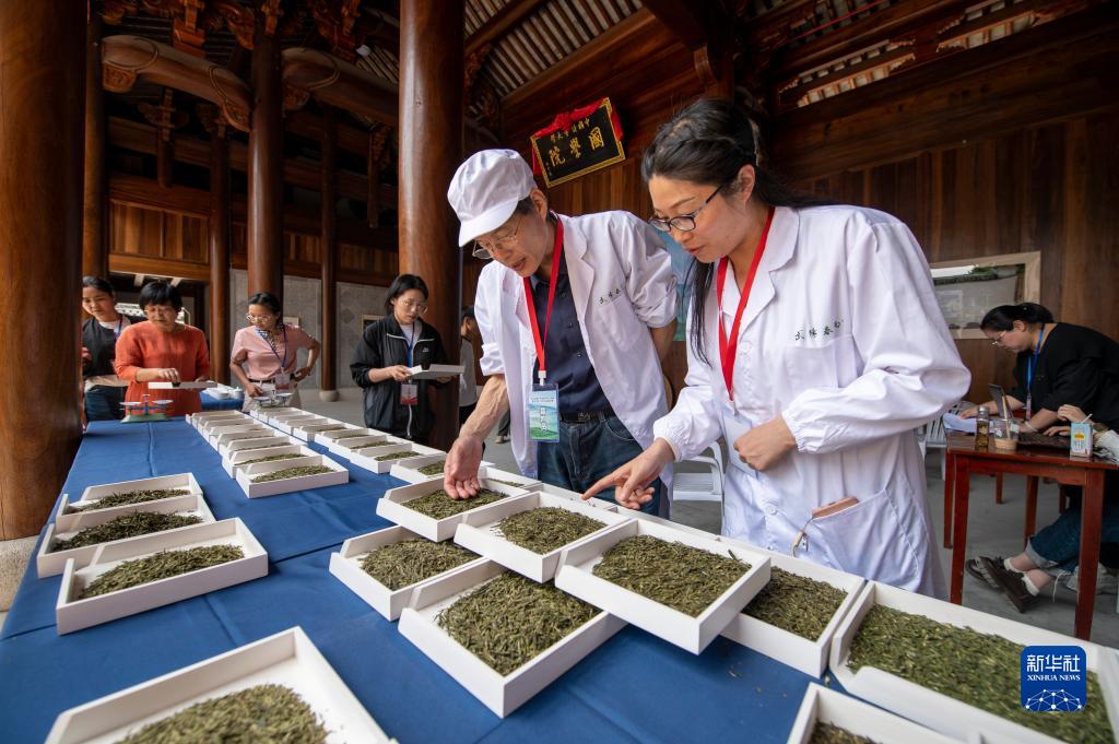 5月13日,在浙江省金華市武義古城,評委在現場進行茶葉質量評比。