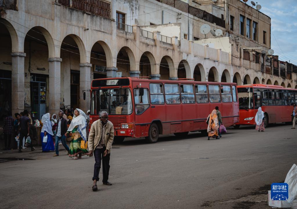 5月9日,市民行走在厄立特里亞首都阿斯馬拉街頭。