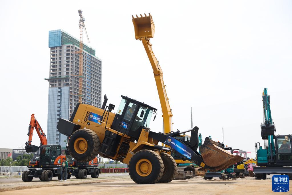 在湖南長沙舉辦的第三屆長沙國際工程機械展覽會上,機手們駕駛挖掘機和裝載機進行整機漂移、“空中漫步”等,并擺出各種造型、秀“舞技”。