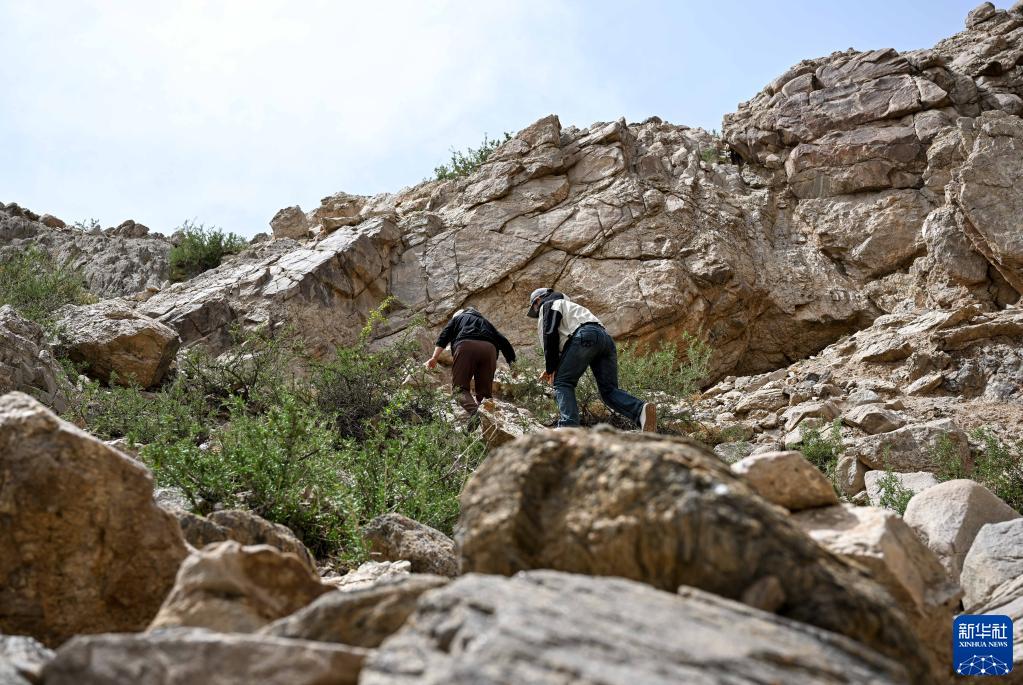 5月13日,為了巡查一處位于山頂上的烽火臺遺址,駝峰(長城)文物保護隊員在山中跋涉。