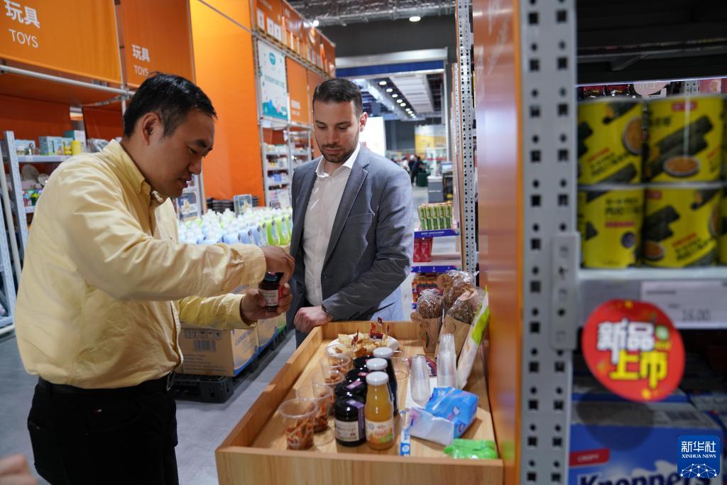 5月13日,在虹橋品匯進博暢購集,工作人員向消費者展示商品。