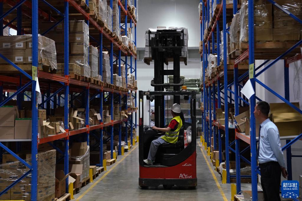 5月13日,在虹橋商務區保稅物流中心(B型),工作人員在運輸跨境電商貨物。
