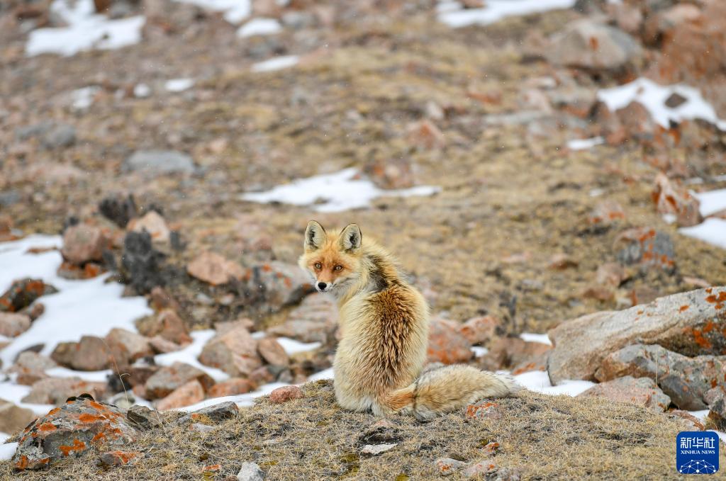 在新疆獨庫公路旁拍攝的狐貍(5月8日攝)。