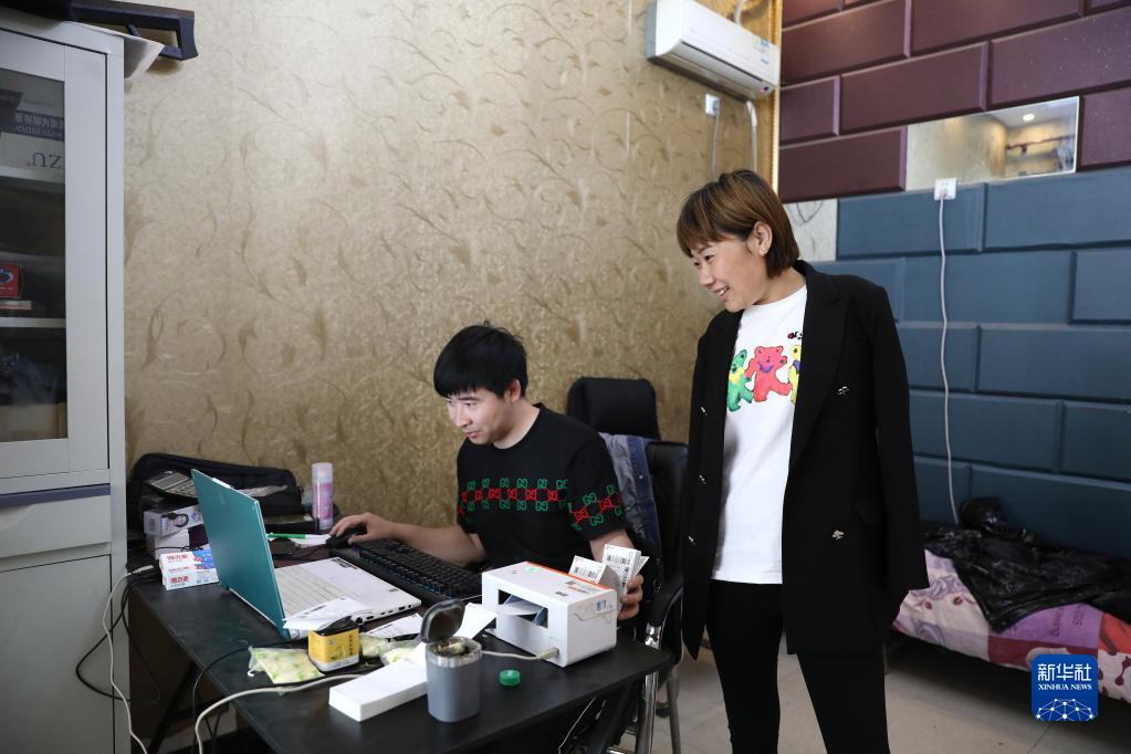 5月11日,韓丹在自己開的網絡傳媒公司內,詢問當天直播售貨情況。