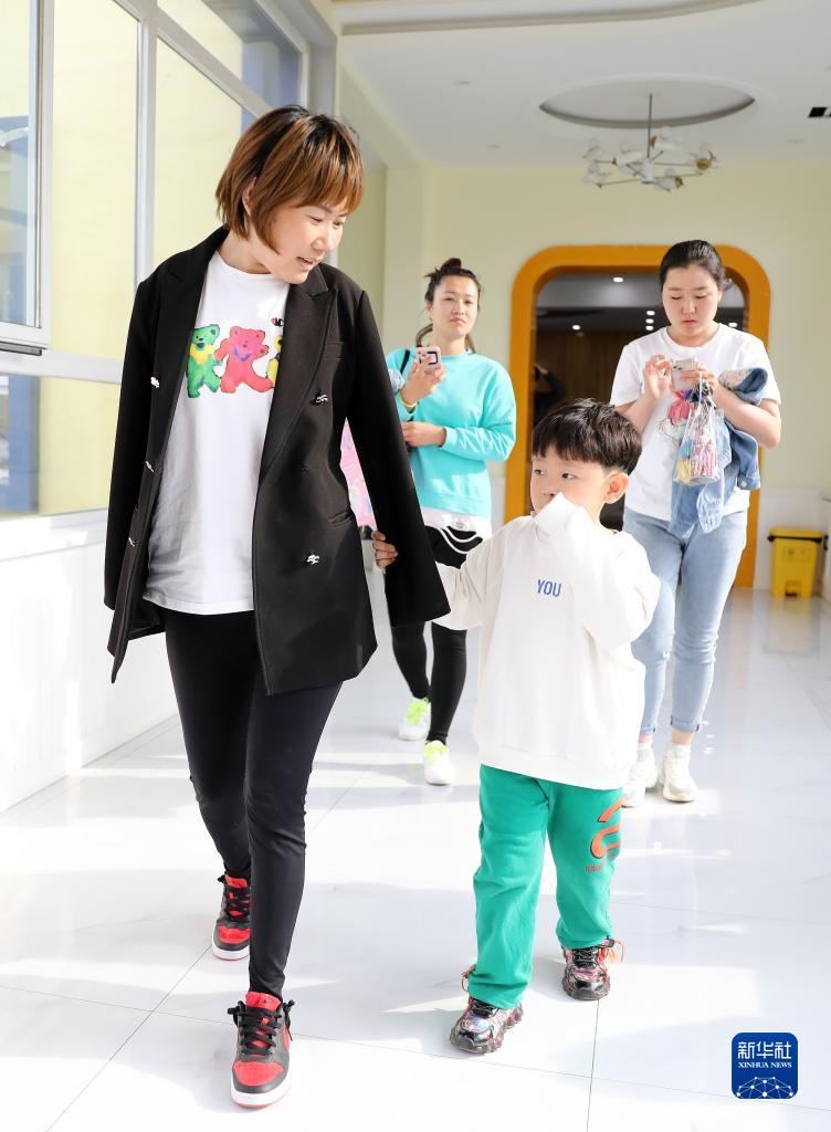 5月11日,兒子拉著韓丹的衣袖,走出幼兒園。