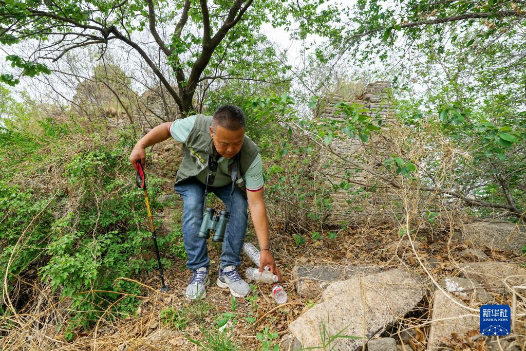 5月13日,趙春生在前后杖子段長城上清理垃圾。