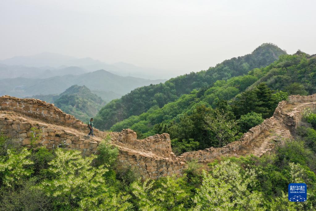 5月13日,趙春生在前后杖子段長城上巡查(無人機照片)。
