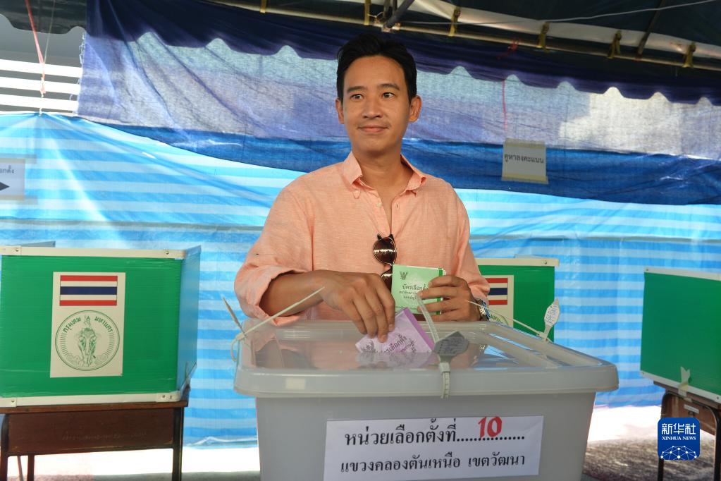 5月14日,泰國遠進黨總理候選人皮塔在曼谷一處投票站投票。