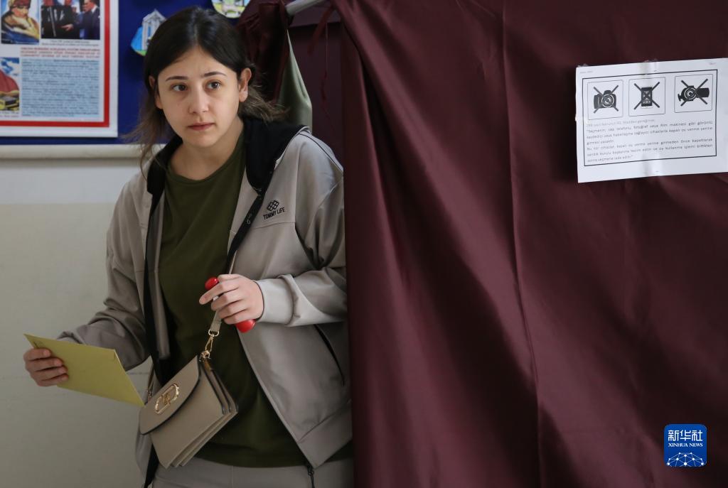 5月14日,在土耳其安卡拉,民眾在一處投票站參加投票。