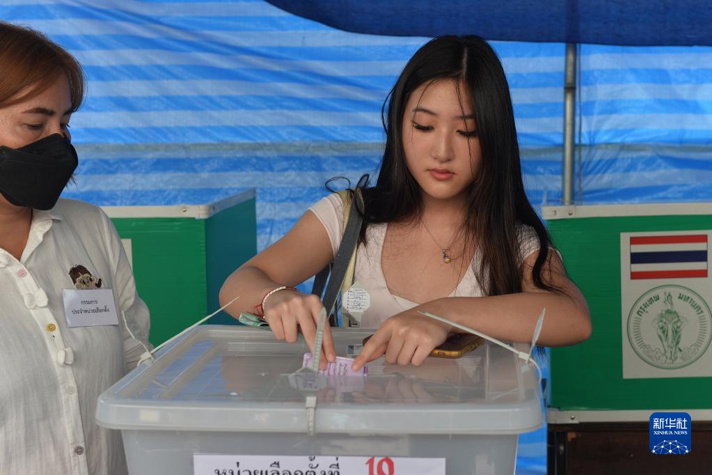 5月14日,一名女子在泰國曼谷一處投票站投票。