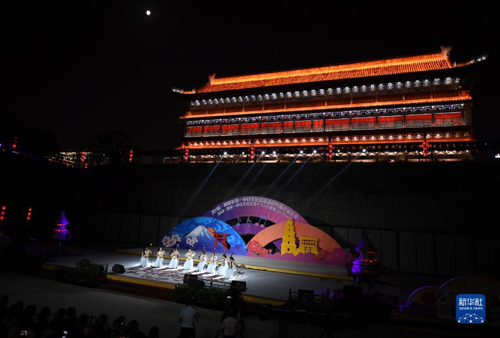 2018年9月22日,在2018·回望長安——中日文化交流活動開幕式音樂會上,中國藝術家在西安明城墻甕城內演奏樂曲《夢入江南》。