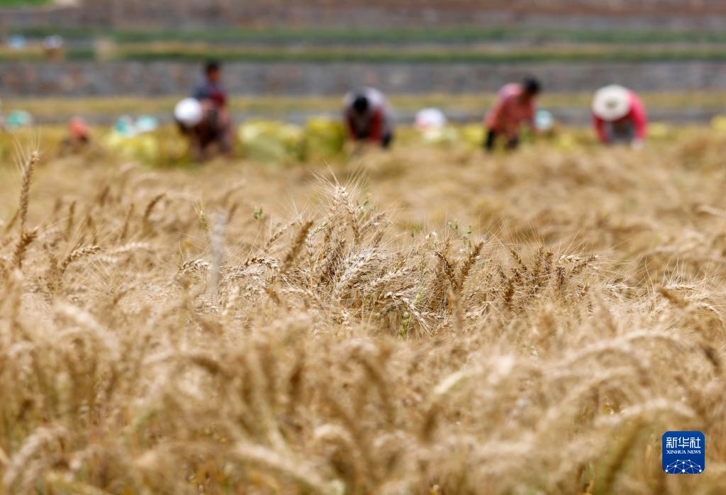 5月14日,農民在貴州省遵義市正安縣安場鎮勝利社區收割小麥。
