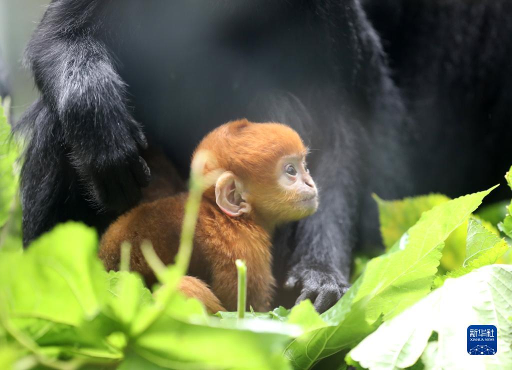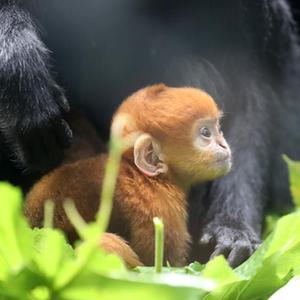 今年以來,廣州長隆野生動物世界成功繁育兩只黑葉猴寶寶“想你”和“花園”。黑葉猴母猴“歡歡”“美美”分別于3月30日與5月5日產下雄性寶寶“想你”和“花園”。剛出生的黑葉猴寶寶全身呈金黃色,兩三個月后就會逐漸變成黑色。