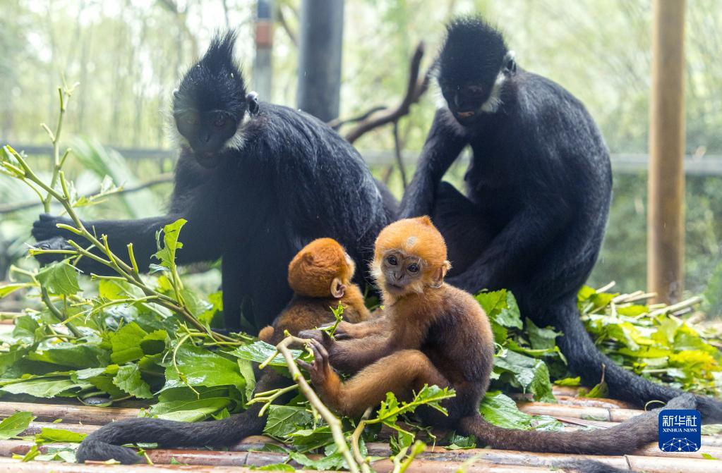 今年以來,廣州長隆野生動物世界成功繁育兩只黑葉猴寶寶“想你”和“花園”。黑葉猴母猴“歡歡”“美美”分別于3月30日與5月5日產下雄性寶寶“想你”和“花園”。剛出生的黑葉猴寶寶全身呈金黃色,兩三個月后就會逐漸變成黑色。