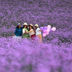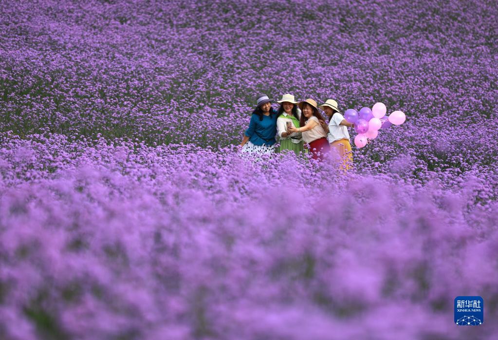 5月14日,游人在貴州省黔東南苗族侗族自治州凱里市三棵樹鎮懷恩堡花園賞花游玩。