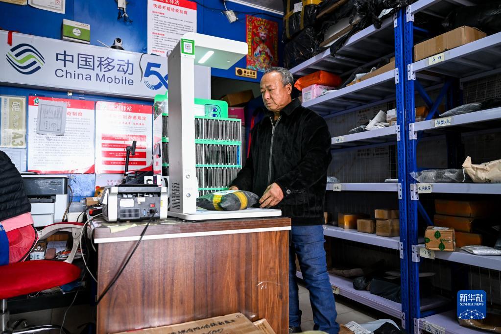 5月13日,在阿榮旗紅花梁子社區快遞驛站,于慶柱將快遞出庫。