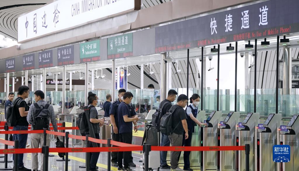 5月15日,旅客準備通過北京大興機場邊檢站快捷通道。