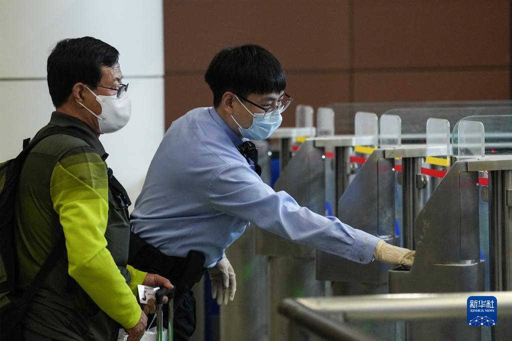 5月15日,沈陽出入境邊防檢查站民警引導旅客進行快捷通關。