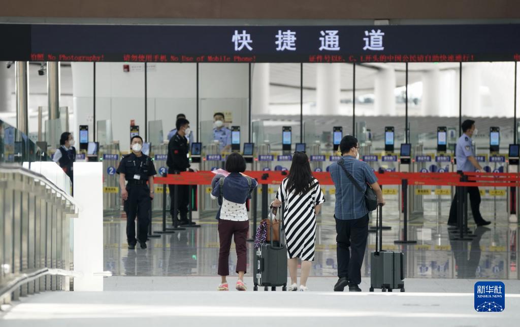 5月15日,旅客準備通過北京大興機場邊檢站快捷通道。