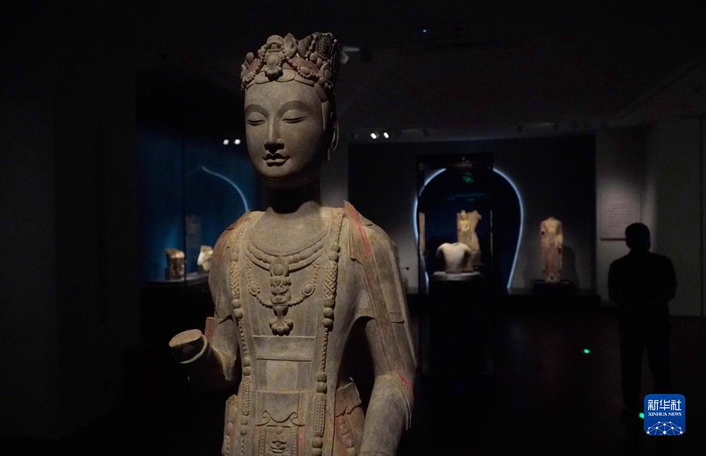 5月15日,在山東省青州博物館新館,1996年龍興寺遺址窖藏出土的佛教造像正在進行展出。