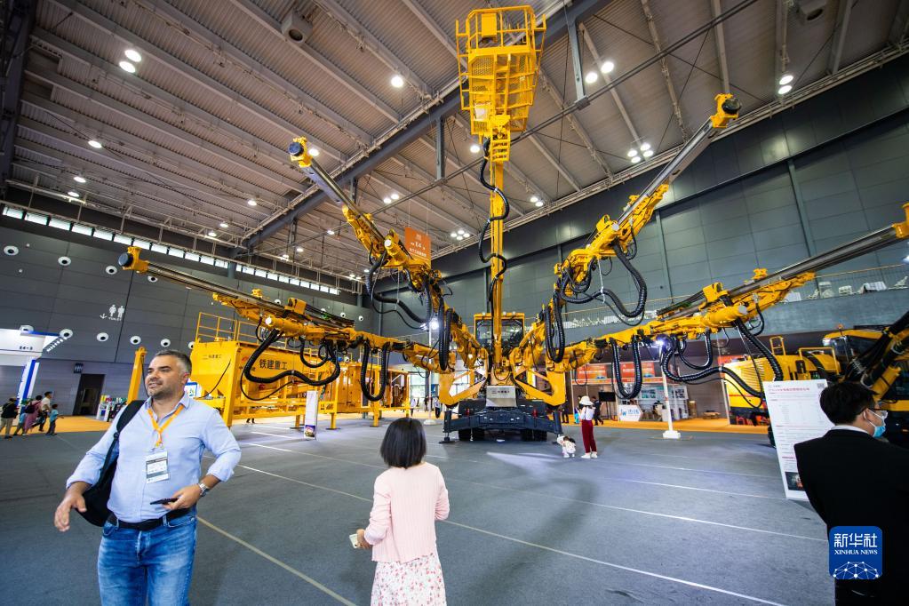 5月15日,在長沙國際會展中心,觀眾在參觀展出的工程機械設備。
