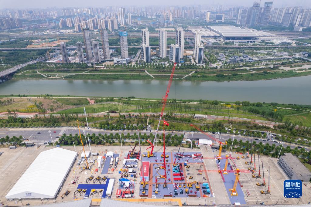 這是5月15日在長沙國際會展中心拍攝的第三屆長沙國際工程機械展覽會戶外展區(無人機照片)。