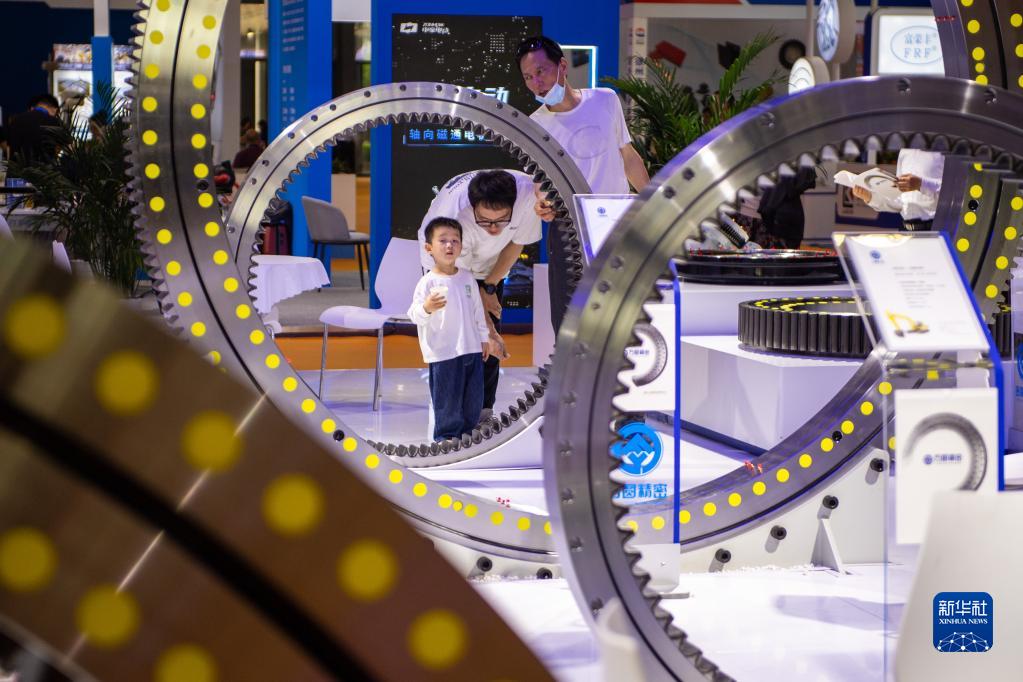 5月15日,在長沙國際會展中心,觀眾在參觀展出的工程機械配件。