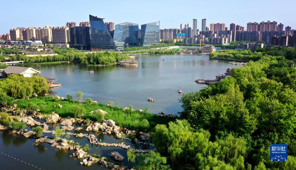 西安曲江南湖(4月25日攝,無人機照片)。