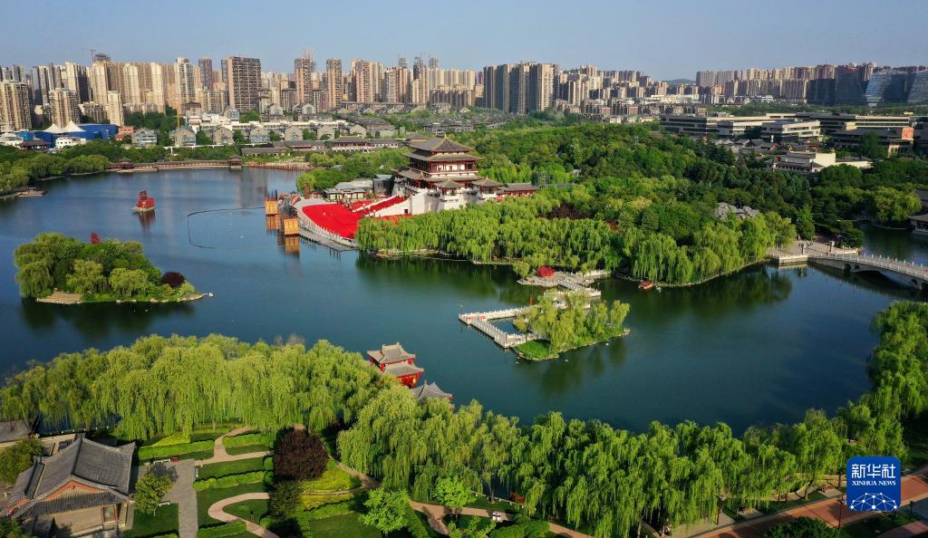 西安大唐芙蓉園(4月25日攝,無人機照片)。
