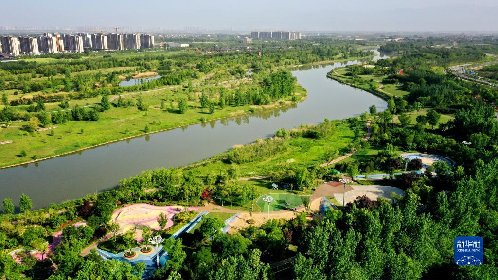 西咸新區灃河兩岸景象(4月29日攝,無人機照片)。