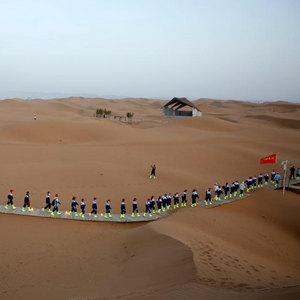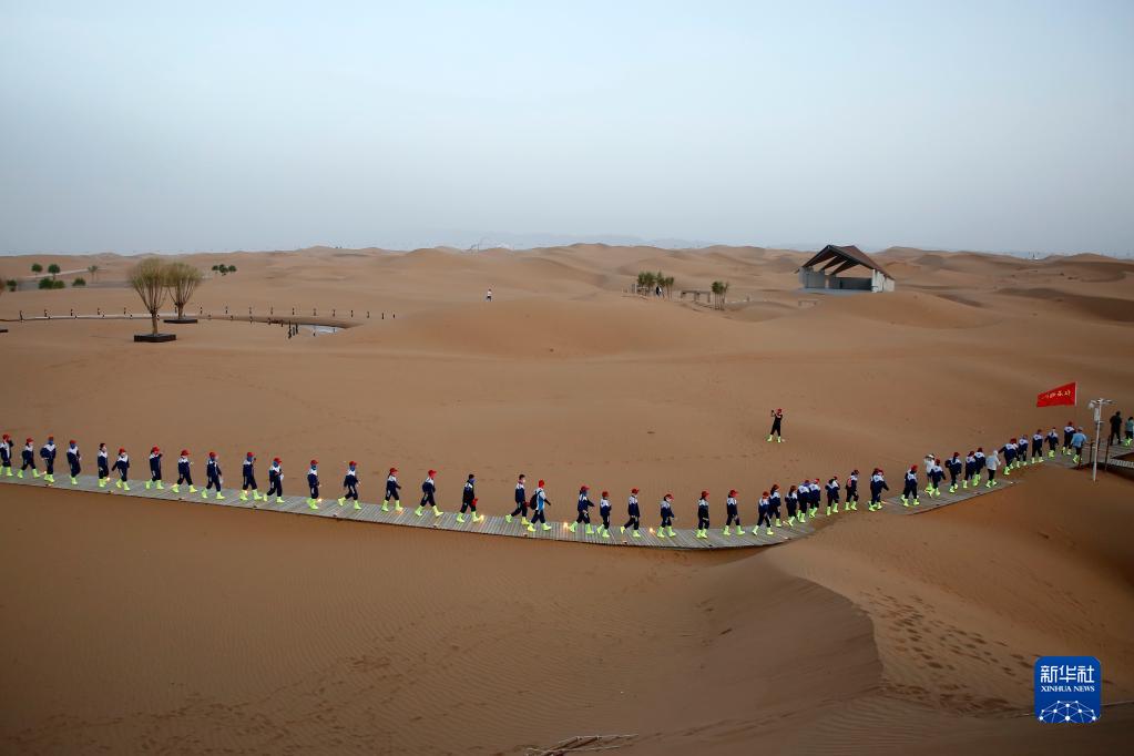 5月14日,學生在位于中衛市沙坡頭區開展徒步沙漠體驗。