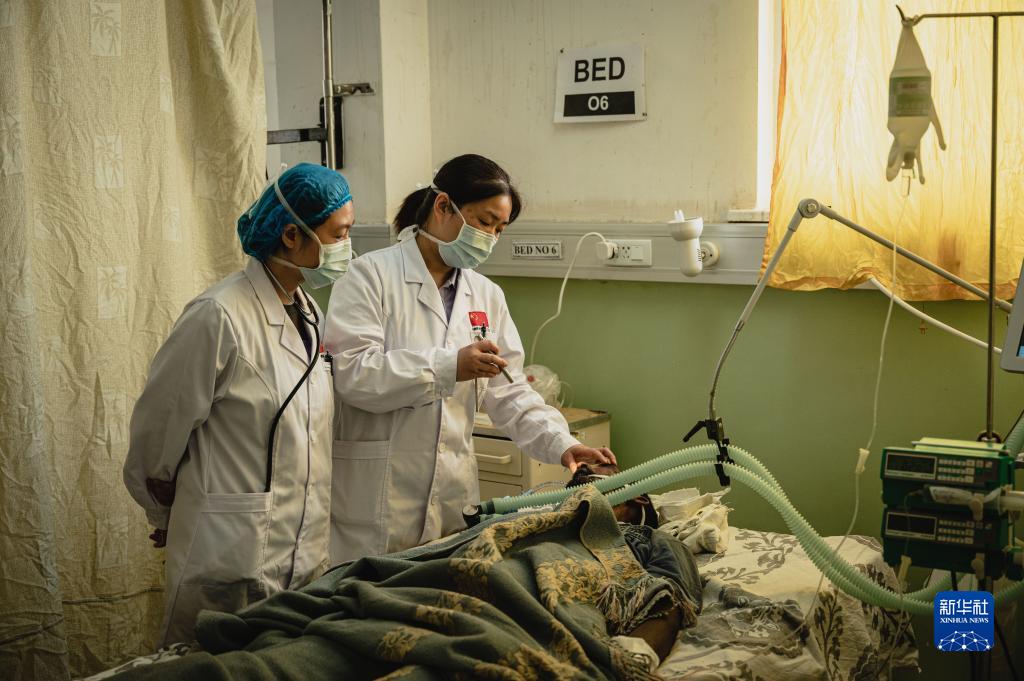 5月9日,在厄立特里亞首都阿斯馬拉的奧羅特醫院,醫療隊神經外科醫生王玉莉(右)和呼吸內科醫生高崴崴在ICU病房會診。
