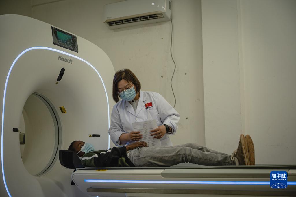 5月9日,在厄立特里亞首都阿斯馬拉的奧羅特醫院,醫療隊CT室醫生田茜為患者做檢查。