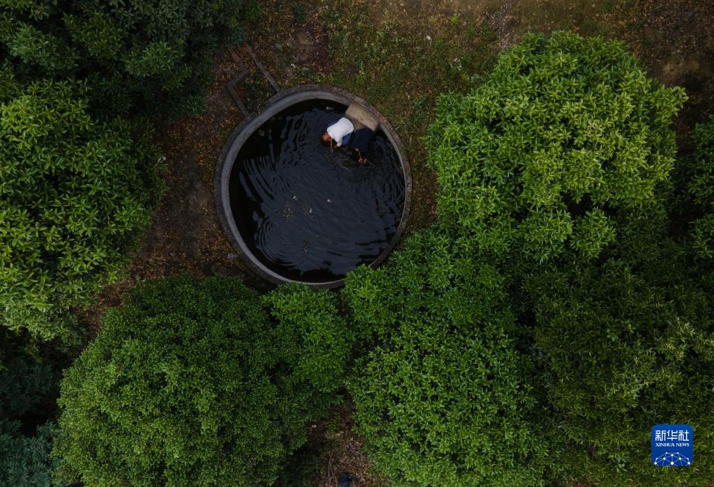 5月14日,在四川省榮縣東興鎮長興林場,李光金(李秀雄二兒子)和一名工人在水池中洗手。李秀雄一家在山上修建了2個水塘、20多個水池以供生產用水。