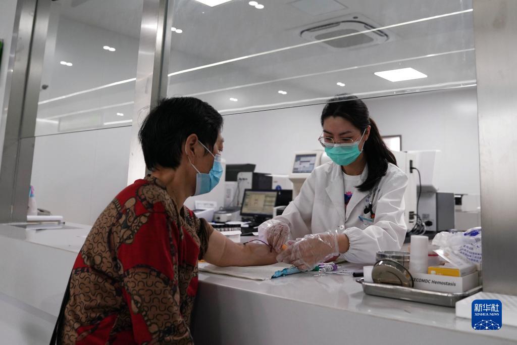 5月16日,一名老人在江蘇省鎮江市潤州區黎明社區衛生服務中心抽血。