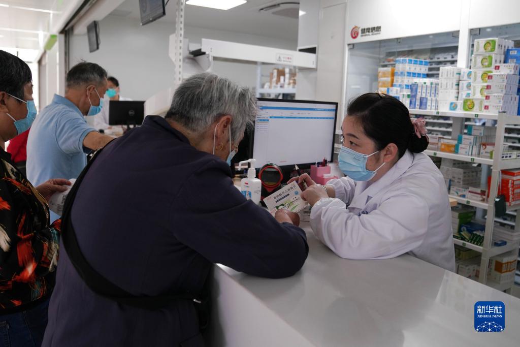 5月16日,在江蘇省鎮江市潤州區黎明社區衛生服務中心,醫務人員向一名老人講解用藥方法。