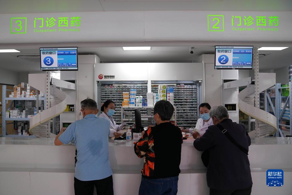 5月16日,人們在江蘇省鎮江市潤州區黎明社區衛生服務中心門診取藥。