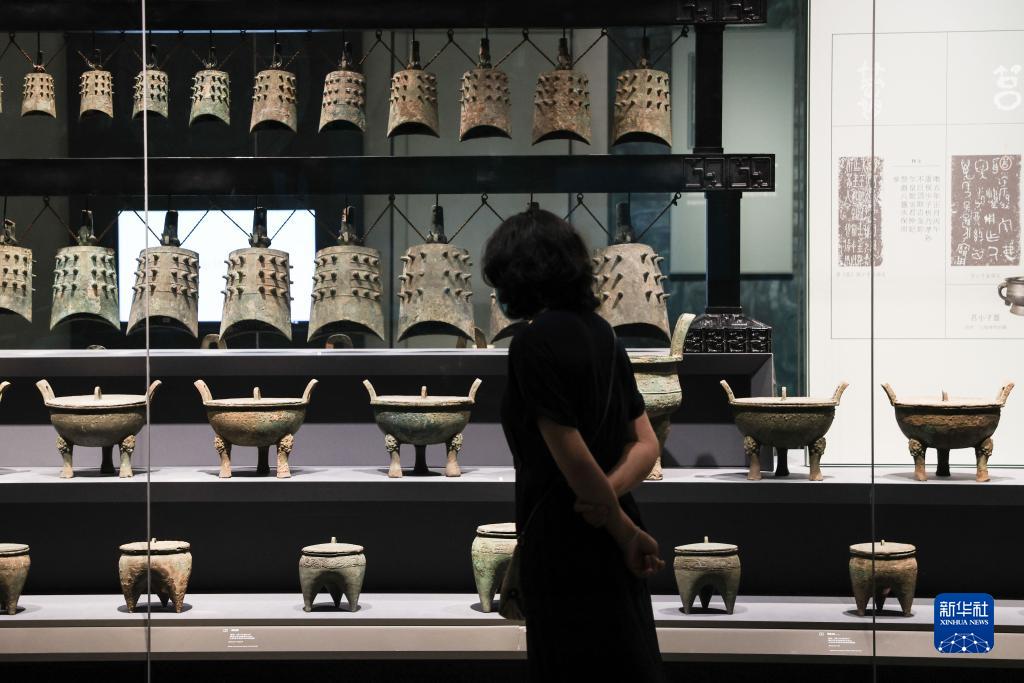 5月16日,觀眾在參觀“海岱日新——山東歷史文化展”展出的商周時期青銅器。
