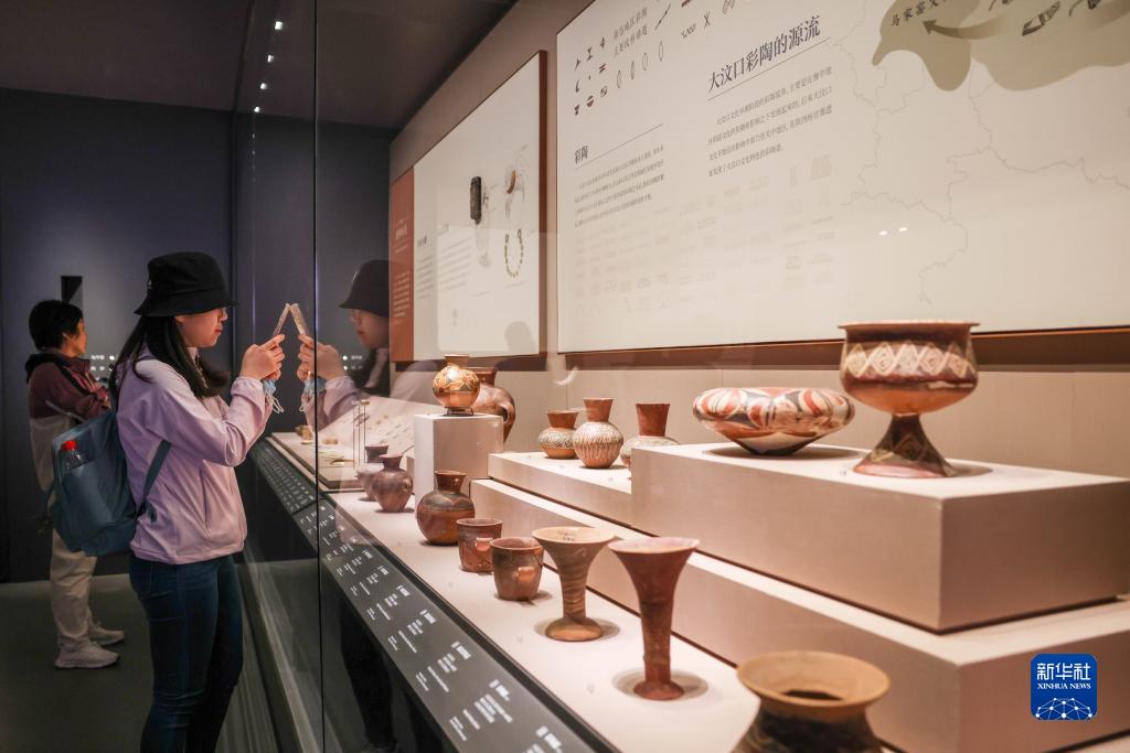 5月16日,觀眾在參觀“海岱日新——山東歷史文化展”展出的史前時期陶器。