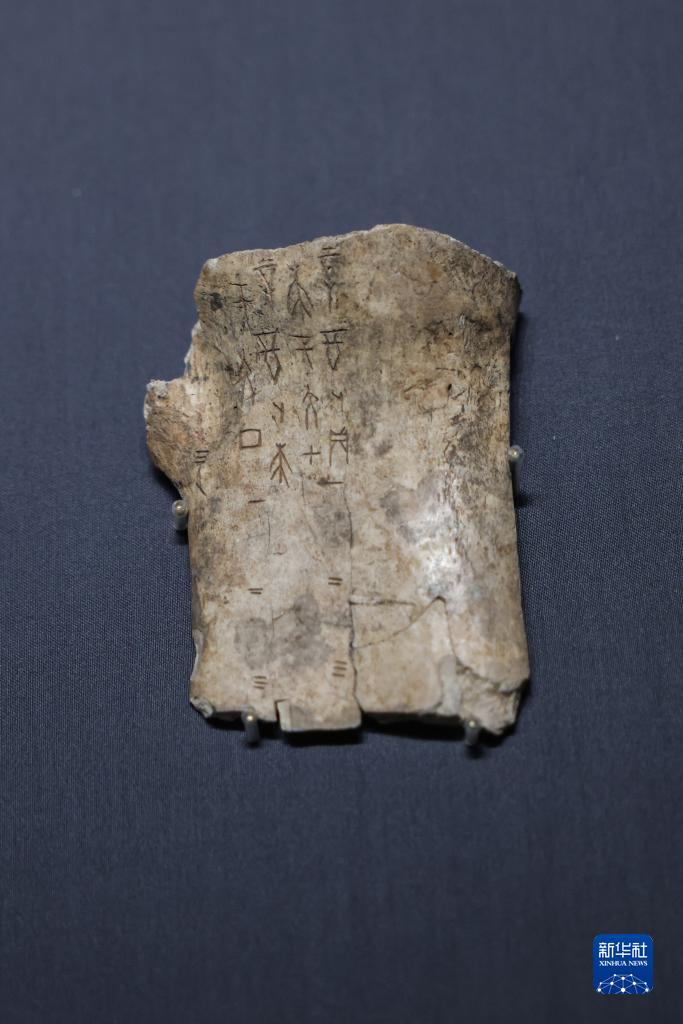 5月16日拍攝的“海岱日新——山東歷史文化展”展出的商代干支表刻辭。