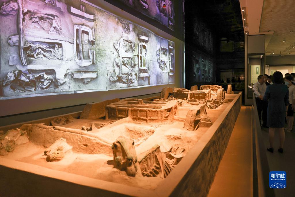 5月16日,觀眾在參觀展出的西周時期車馬坑。